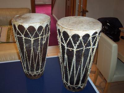 I have a pair of dark brown and cream animal skin drums. They resemble the Ashiko style drums. Can anyone shed any light on this from the attached photo? How much are they worth, if anything?